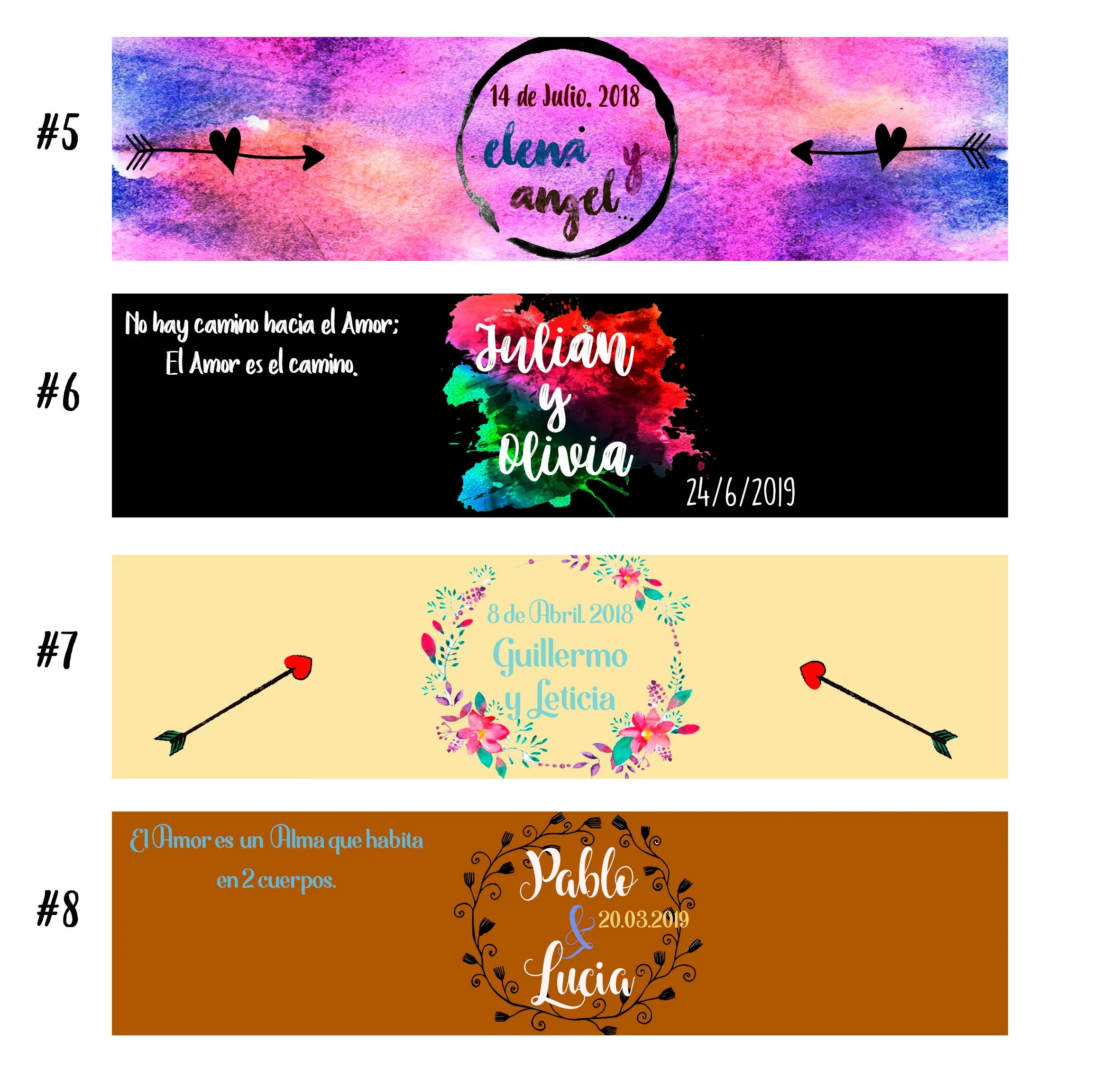 – Se entregan etiquetados con los nombres y fecha de tu evento.