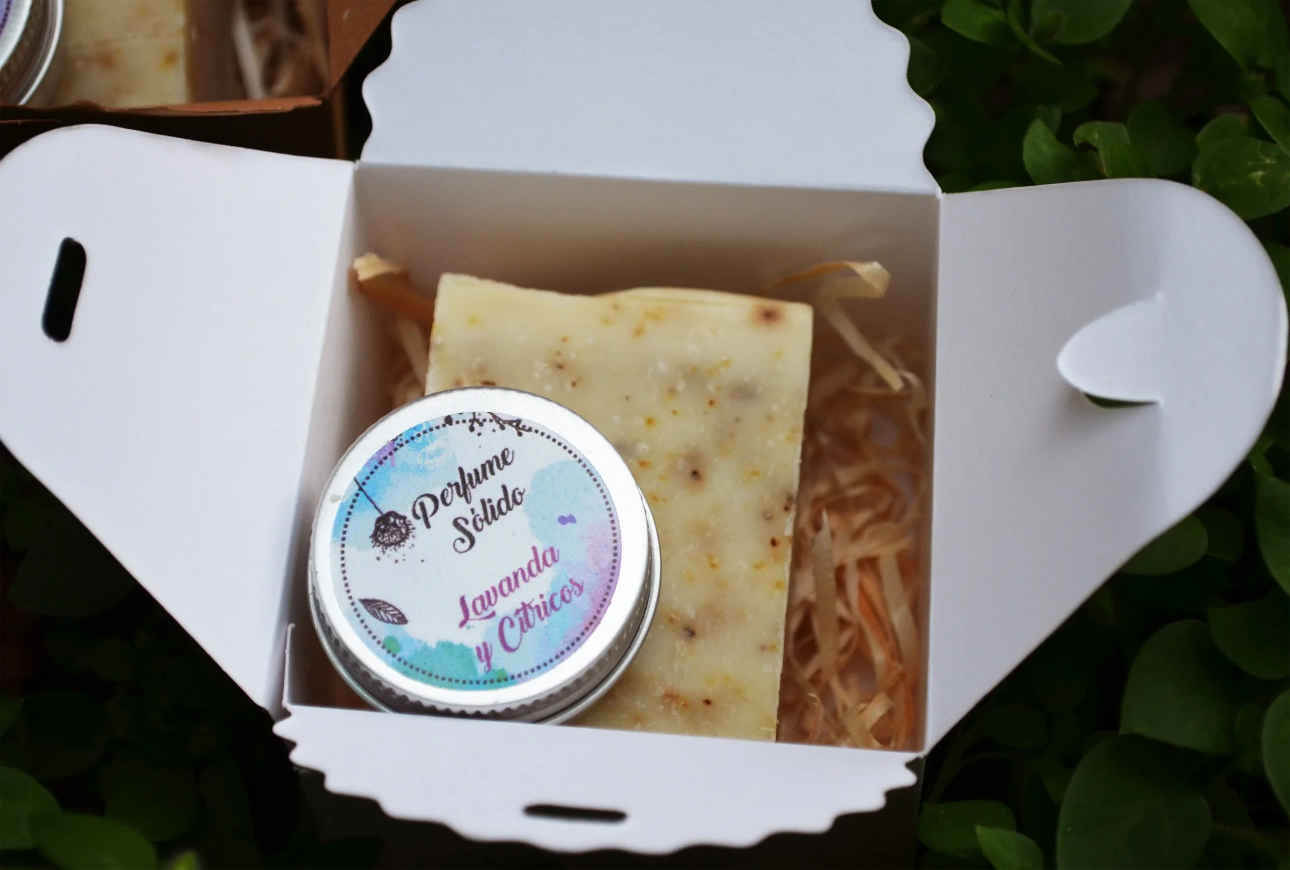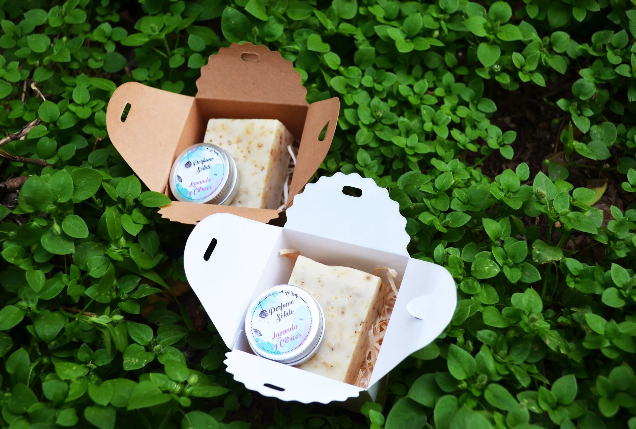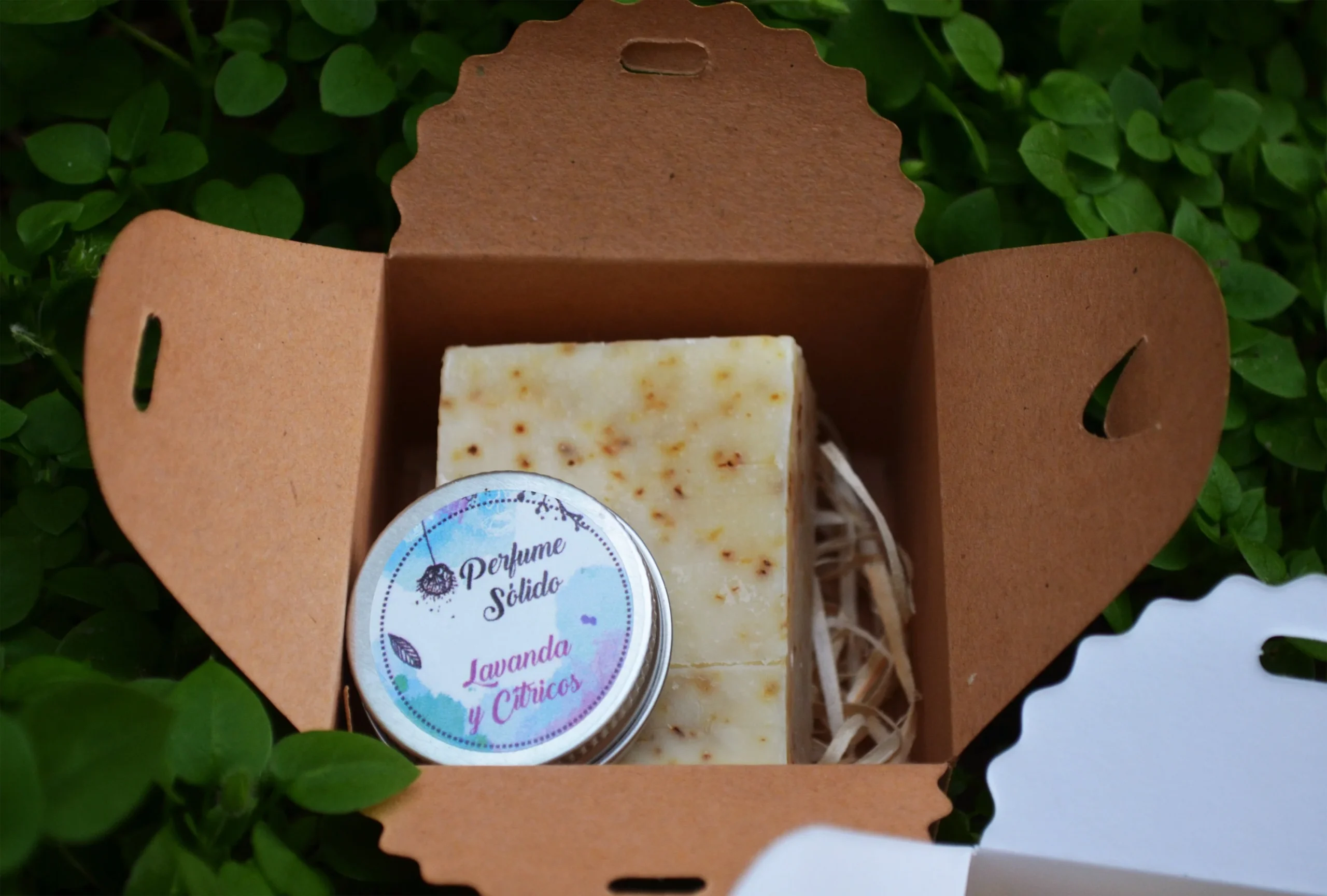 Lote Pack Jabón natural + Perfume sólido en caja kraft , regalos personalizados , detalles para eventos, boda, comunión, bautizo, etc.