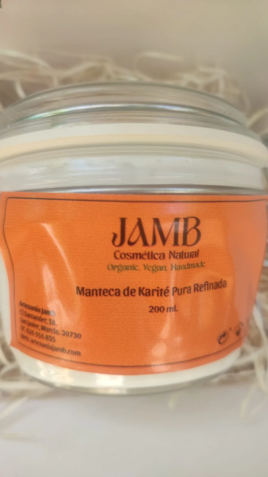 Manteca de Karité Pura Refinada. Tarro vidrio con sellado hermético. 200 ml.