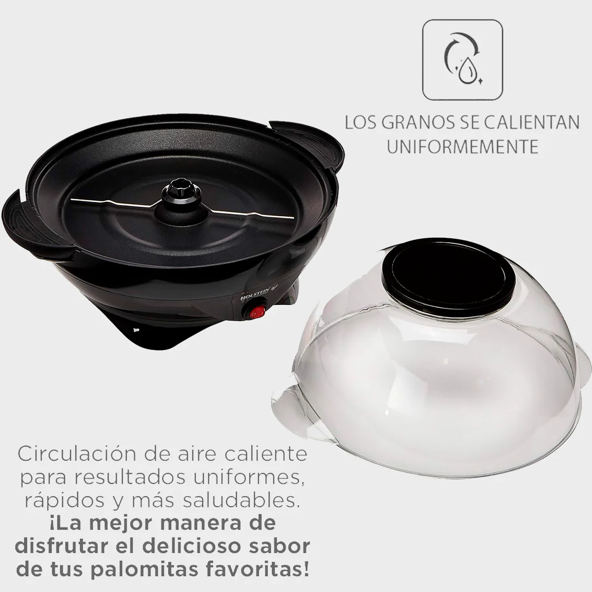 ¡La máquina para hacer palomitas de maíz con aceite caliente de Holstein Housewares trae palomitas de maíz estilo cine directamente a su hogar! Hace hasta 24 tazas de palomitas de maíz frescas (incluye taza de 30ml) y puede voltear la tapa de plástico transparente sin BPA y usarla como rasguño para servir. ¡Diviértase y personalice los sabores agregando coberturas como una mezcla de frutos secos, especias o incluso mantequilla derretida!