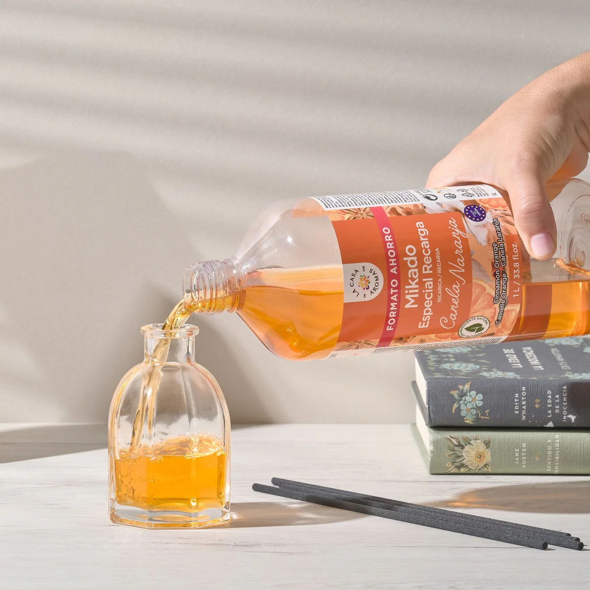 Disfruta durante más tiempo del aroma cálido y envolvente del Palo Santo con la reposición Mikado de 1 litro de La Casa de los Aromas. Un formato ahorro pensado para quienes buscan practicidad, rendimiento y una fragancia constante que transforme cualquier estancia en un espacio acogedor y relajante.