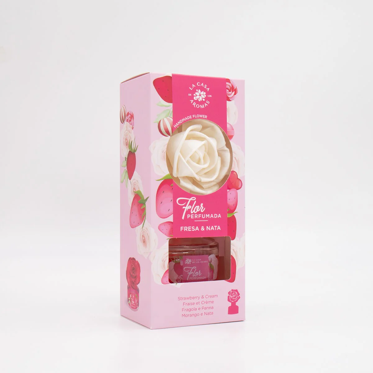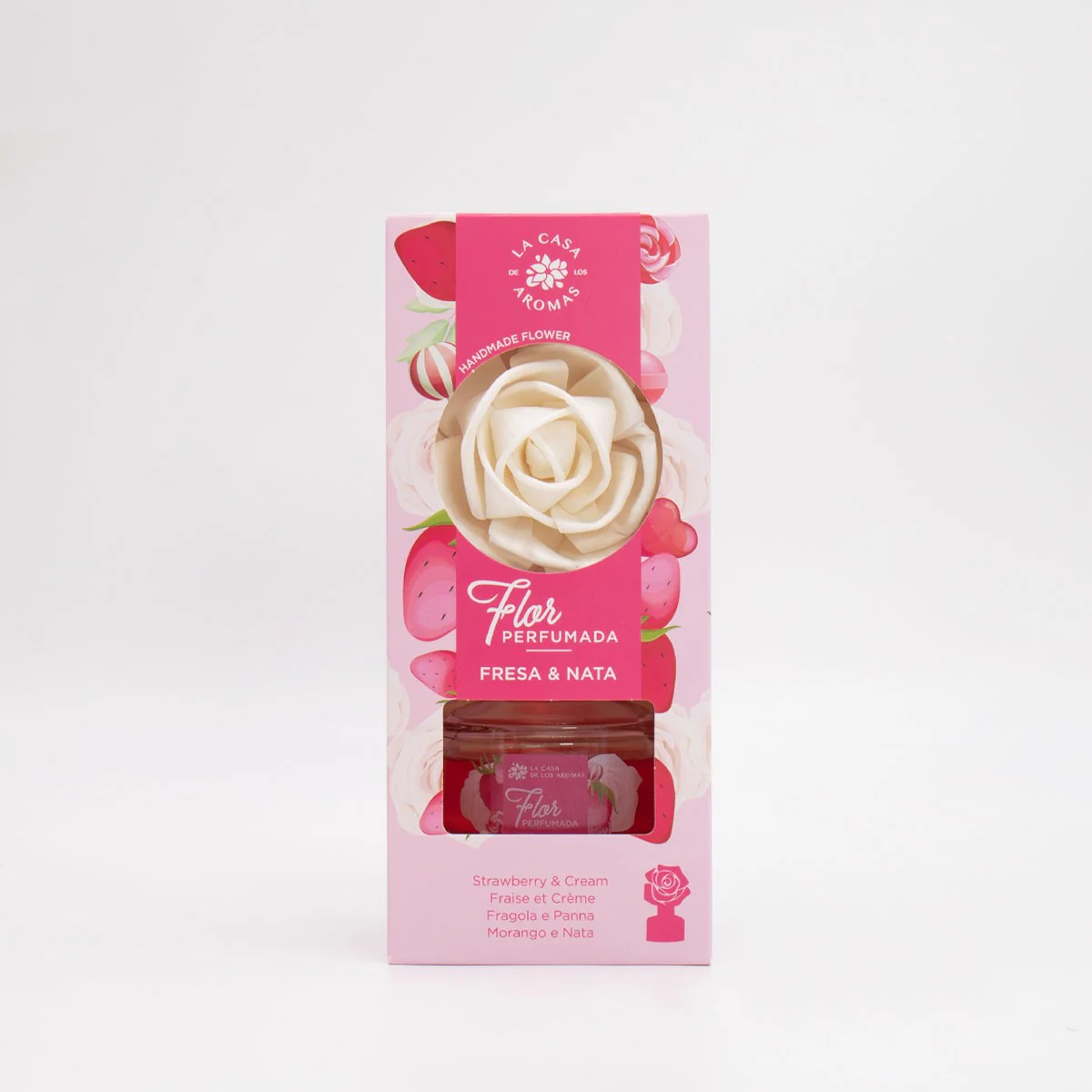 Su fórmula ha sido desarrollada de modo que la flor siga expandiendo el aroma cuando se ha terminado el líquido, por lo que tiene una mayor duración.