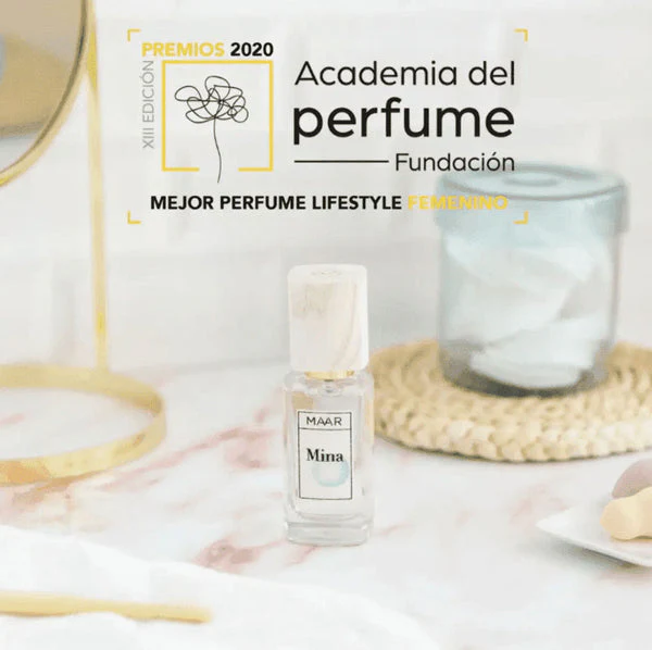 Mina es la ganadora de la categoría Lifestyle Femenino de los Premios de la Academia del Perfume 2020, los premios de perfumería más importantes de España.