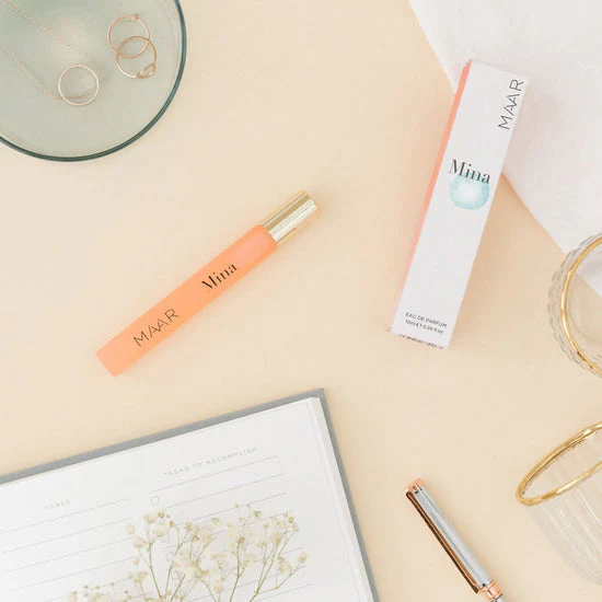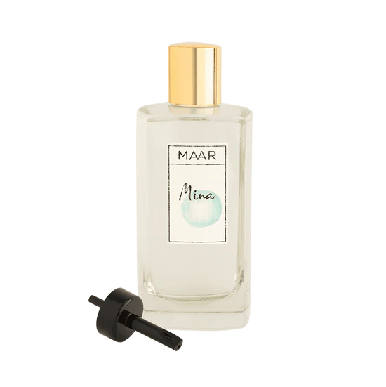 Mina es un perfume luminoso que exhala notas cítricas delicadamente envueltas en suaves aromas almizclados. Es una fragancia muy fresca y alegre, que contiene hasta 15 aceites esenciales naturales. Pertenece a la familia de los cítricos, con el aceite de bergamota de la zona italiana de Calabria como ingrediente principal.