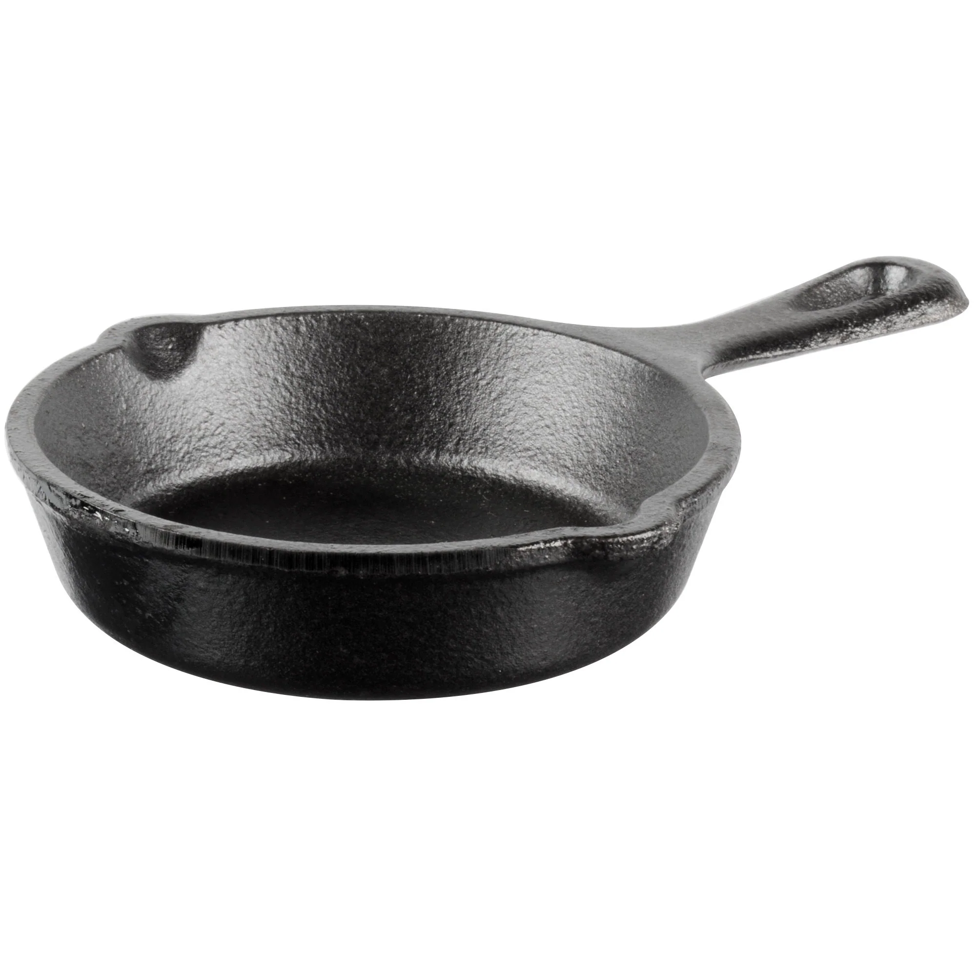 Mini sartén redondo de 8.89 cm hierro fundido ideal como porción individual. Adecuado para su uso en estufas eléctricas, de gas y de inducción, así como en la parrilla. Puede ser utilizado en el horno como una bandeja de horno. Retiene el calor para mantener la comida caliente como un plato de servir.