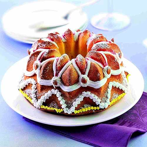 La forma sostiene la temperatura de – 60 hasta + 230°C. La silicona no contiene bisfenol-A dañino y cumple con los estándares de calidad europeos. Es inodoro y no humea durante la cocción. El material es flexible, duradero, resistente a temperaturas extremas. El formulario mantiene hasta 3000 usos. Antes de su uso, el producto debe ser lubricado con aceite. Diámetro: 24 cm Volumen: 2300 ml.