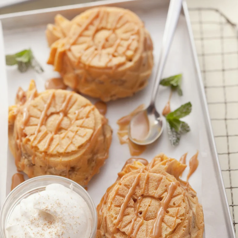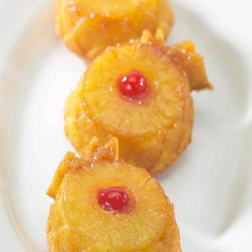¡El encanto de un pastel invertido de piña, en un pastel de tamaño personal! Para una presentación colorida, decore con glaseado real o cubra con bayas frescas y helado para disfrutar de un fresco verano.