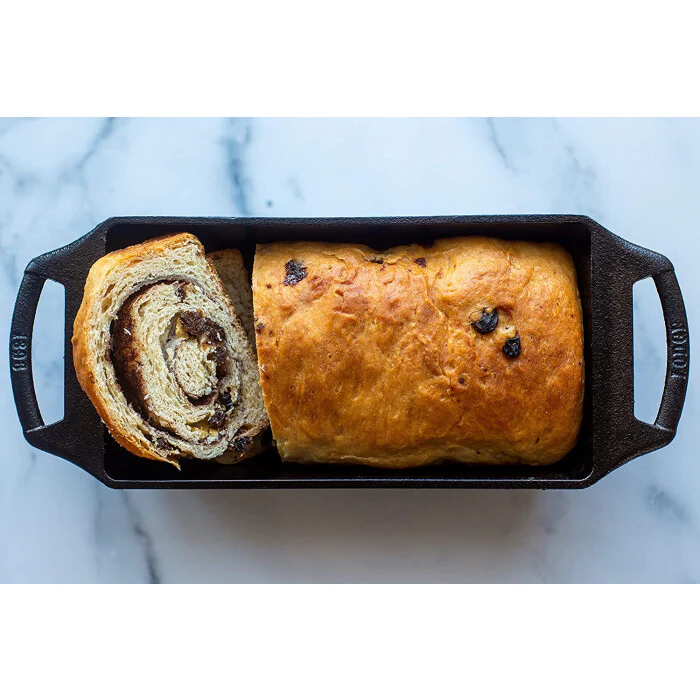 Dígale adiós a las huellas dactilares y hola al levantamiento fácil con el juego de 2 ASAS de silicona para un facil agarre. Elaborado en Estados Unidos con hierro y aceite, la superficie para hornear con antiadherente natural, el molde para pan no se abollará, doblará ni deformará a altas temperaturas. El calentamiento uniforme del hierro fundido le ayuda a lograr la corteza perfecta y obtener piezas de borde bien definidas.