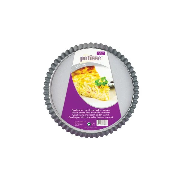 Este molde para quiche Patisse tiene un diámetro de 24 centímetros y una altura de 3,1 centímetros. Este molde para quiche Patisse tiene un fondo desmontable, lo que hace que sea muy fácil desmoldar la quiche. Con este molde harás las quiches más ricas.
