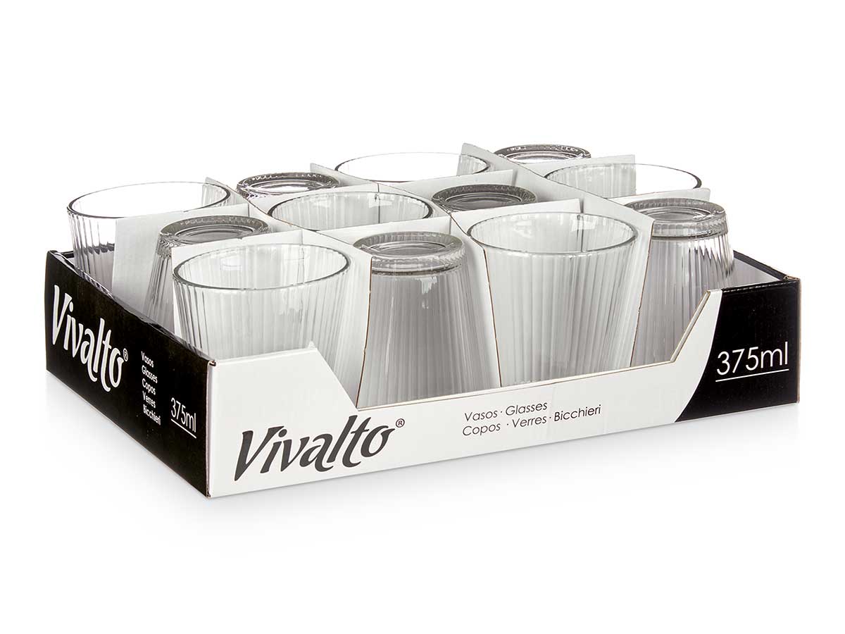 Pack 12 Vasos de Vidrio Rayas Transparente 375ml