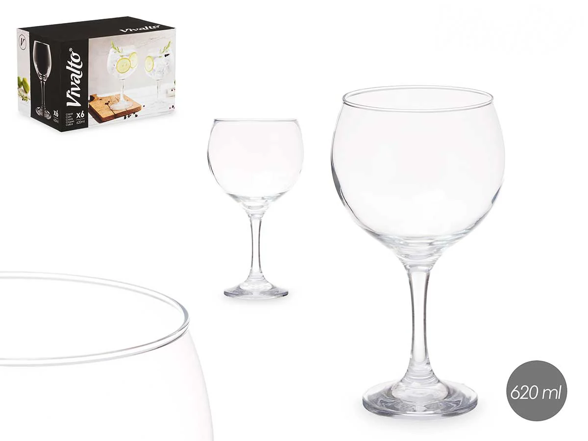 El Pack de 6 Copas de Vidrio con una capacidad de 620ml cada una presenta las siguientes características: