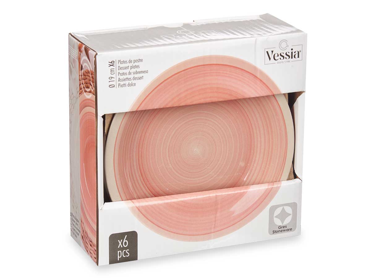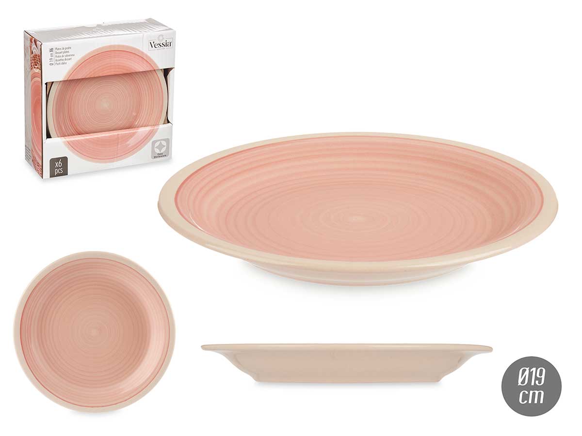 Pack 6 Platos Postre Gres Rosa Borde 19cm