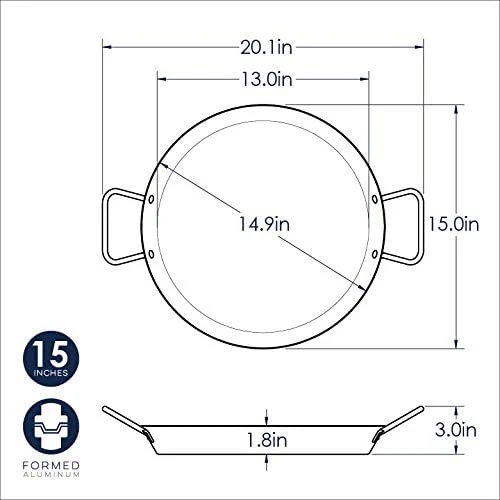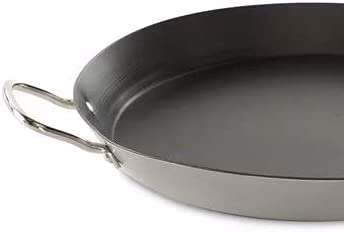 La abundante y sabrosa combinación de diferentes grupos de alimentos de la paella la convierte en un plato divertido para servir en fiestas. Esta sartén de acero aluminizado está diseñada para cocinar de 6 a 8 porciones a la vez. A diferencia de una paellera de acero delgada, que tiene puntos calientes y puede ser difícil de limpiar después de un tiempo de cocción tan prolongado, nuestra paellera de peso pesado conduce el calor por toda su superficie y está recubierta con una superficie antiadherente hecha sin PFOA para facilitar la limpieza. Con asas de alambre remachadas de gran tamaño para garantizar un agarre firme cuando se usan guantes para horno.