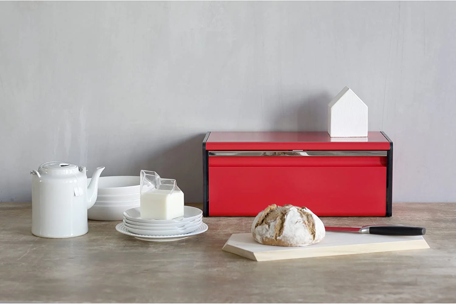 ¿Buscas una solución que ocupe poco espacio para conservar el pan fresco o tus galletas crujientes? Te presentamos a la panera de tapa abatible de Brabantia. Tiene capacidad para dos barras de pan, pero gracias a su diseño rectangular, no ocupa demasiado espacio. Otras características destacadas: dispone de una parte superior plana para colocar tus botes, la tapa cuenta con un amplio agarre para facilitar la apertura y un imán para un cierre perfecto. ¿No tienes espacio en la encimera? En ese caso puedes colgarla en la pared a través de sus orificios de la parte trasera. ¡Una panera que te enamorará!
