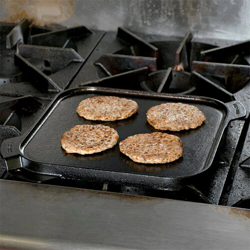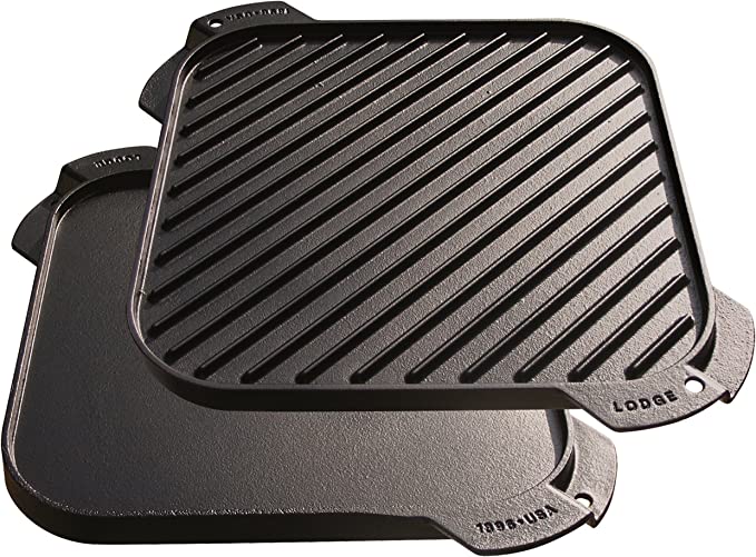 Esta parrilla/plancha reversible es excelente para garantizar la retención del calor y un calentamiento uniforme durante el uso. Y, dado que viene pre-sazonado de Lodge, ofrece un acabado natural de fácil liberación que mejora con el uso, lo que le permite cocinar de manera más saludable al limitar la cantidad de aceites necesarios para cocinar.