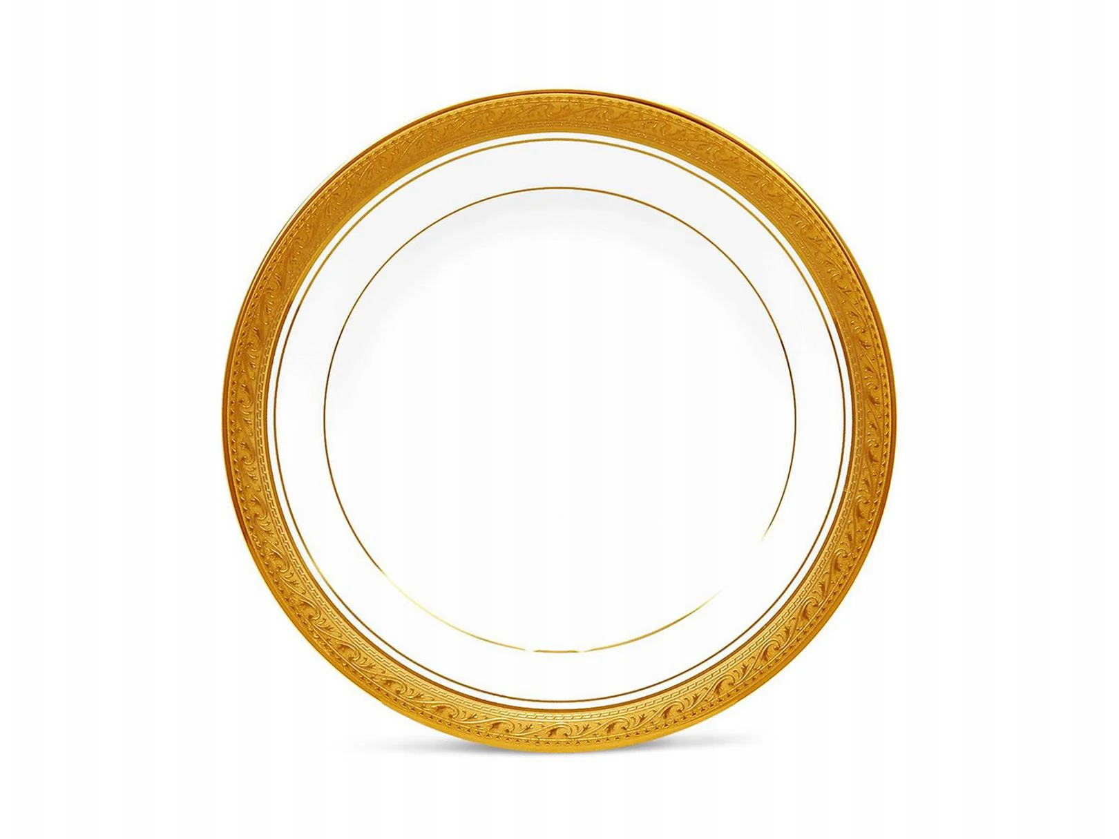 Crestwood Gold trae elegancia sofisticada a la mesa! Este deslumbrante patrón presenta porcelana blanca brillante y nítida, combinada con una banda dorada para lograr una apariencia de elegante sencillez. La banda dorada exterior está grabada con un diseño de hojas enrolladas. Crestwood Gold ofrece componentes de configuración de lugares, así como una variedad de piezas para servir y accesorios. ¡Crestwood Gold es lo suficientemente resistente para el uso diario y es apto para lavavajillas!