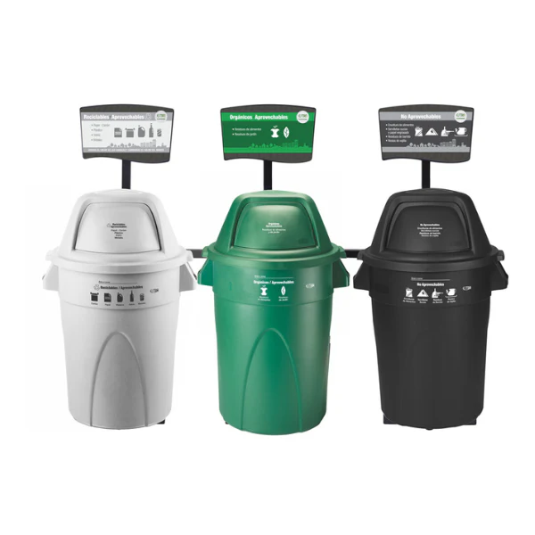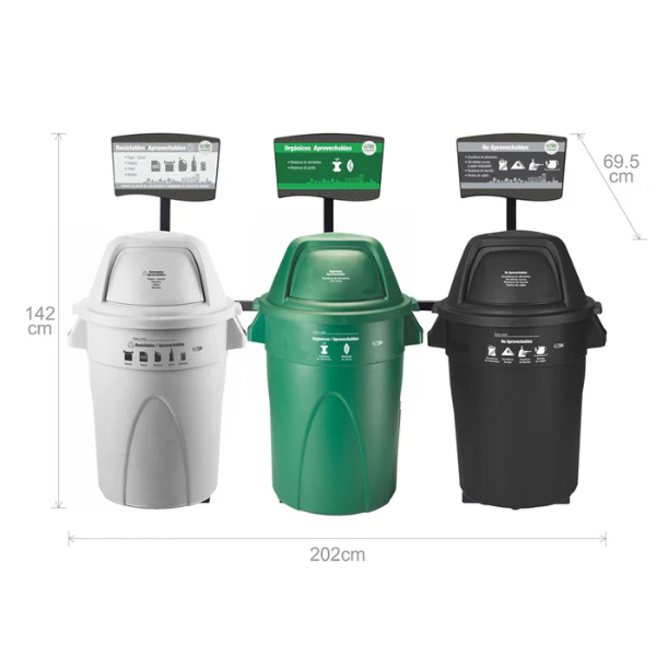 El punto ecológico de 121 litros de Estra de 3 pt promueve la clasificación de residuos y facilita el trabajo a los usuarios. Le ayuda a cumplir con la resolución 2184 de 2019.