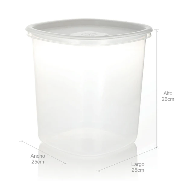 Su tapa cierra herméticamente y ayuda a la conservación y orden de los alimentos. El recipiente plus alto de 9 lt es apilable y fácil de lavar.