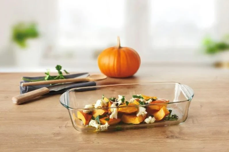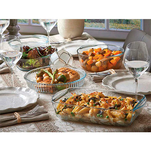 – El atractivo diseño de la cristalería permite servir los platos directamente del horno.