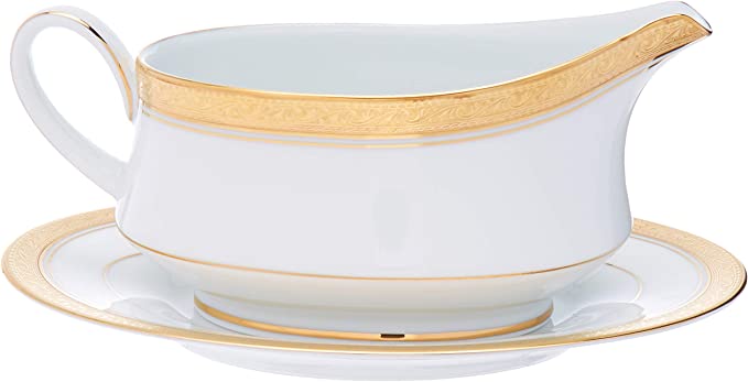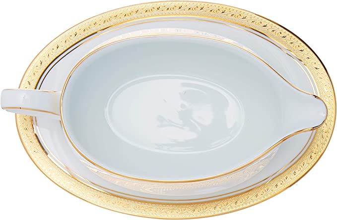 Salsera con plato de porcelana Crestwood Gold Noritake