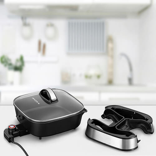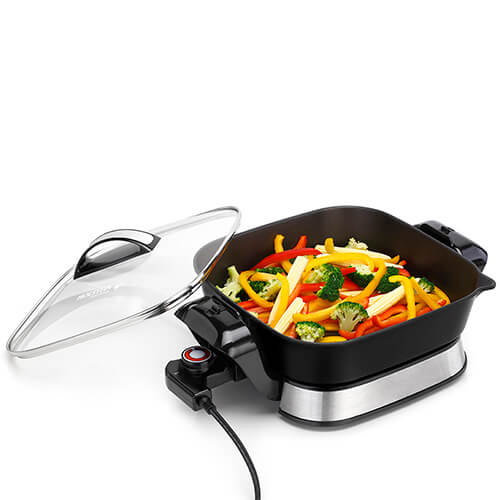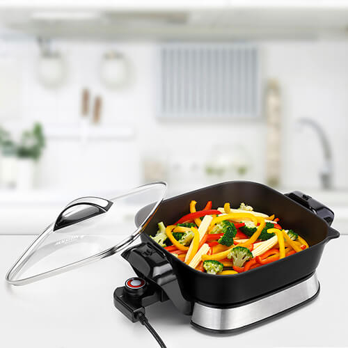 La sartén eléctrica Holstein permite preparar una amplia variedad de alimentos saludables y recetas variadas. Cocción más rápida y uniforme. Interior antiadherente que no necesita aceite para la preparación de los alimentos, y facilita la limpieza del producto.