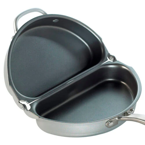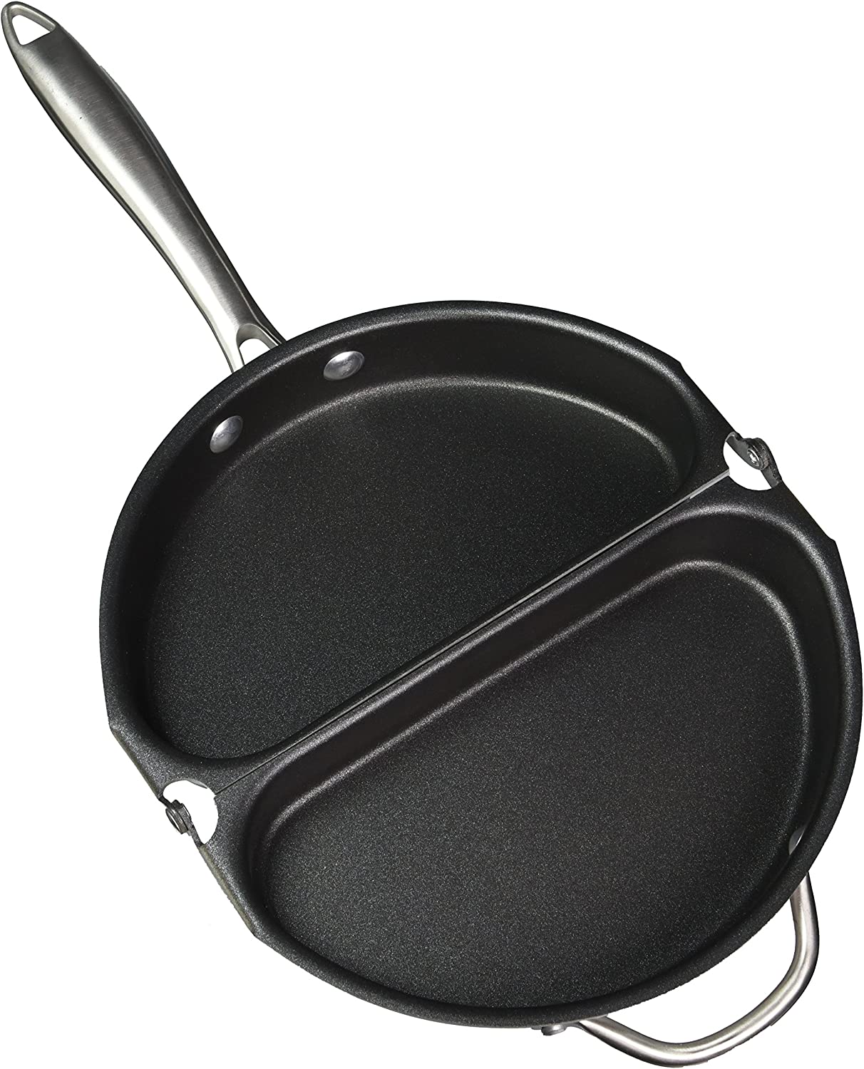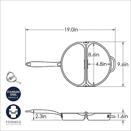 Crea omelettes y frittatas con facilidad en esta versátil sartén de aluminio. Las opciones con esta sartén son tan limitadas como tu imaginación. Un diseño único con bisagras permite una creatividad sin problemas en la estufa o en el horno. La construcción de aluminio formado de calidad y una superficie antiadherente súper resbaladiza hecha sin PFOA hacen que esta sartén sea fácil de usar y muy fácil de limpiar.