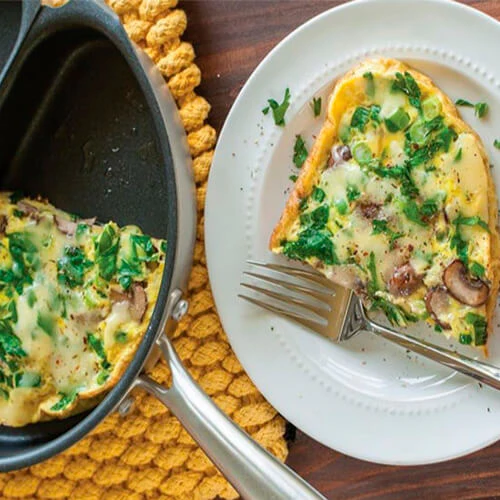 Además gracias a sus espaciosas cavidades, tiene suficiente espacio para colocar rellenos generosos en los omelettes o fritattas.