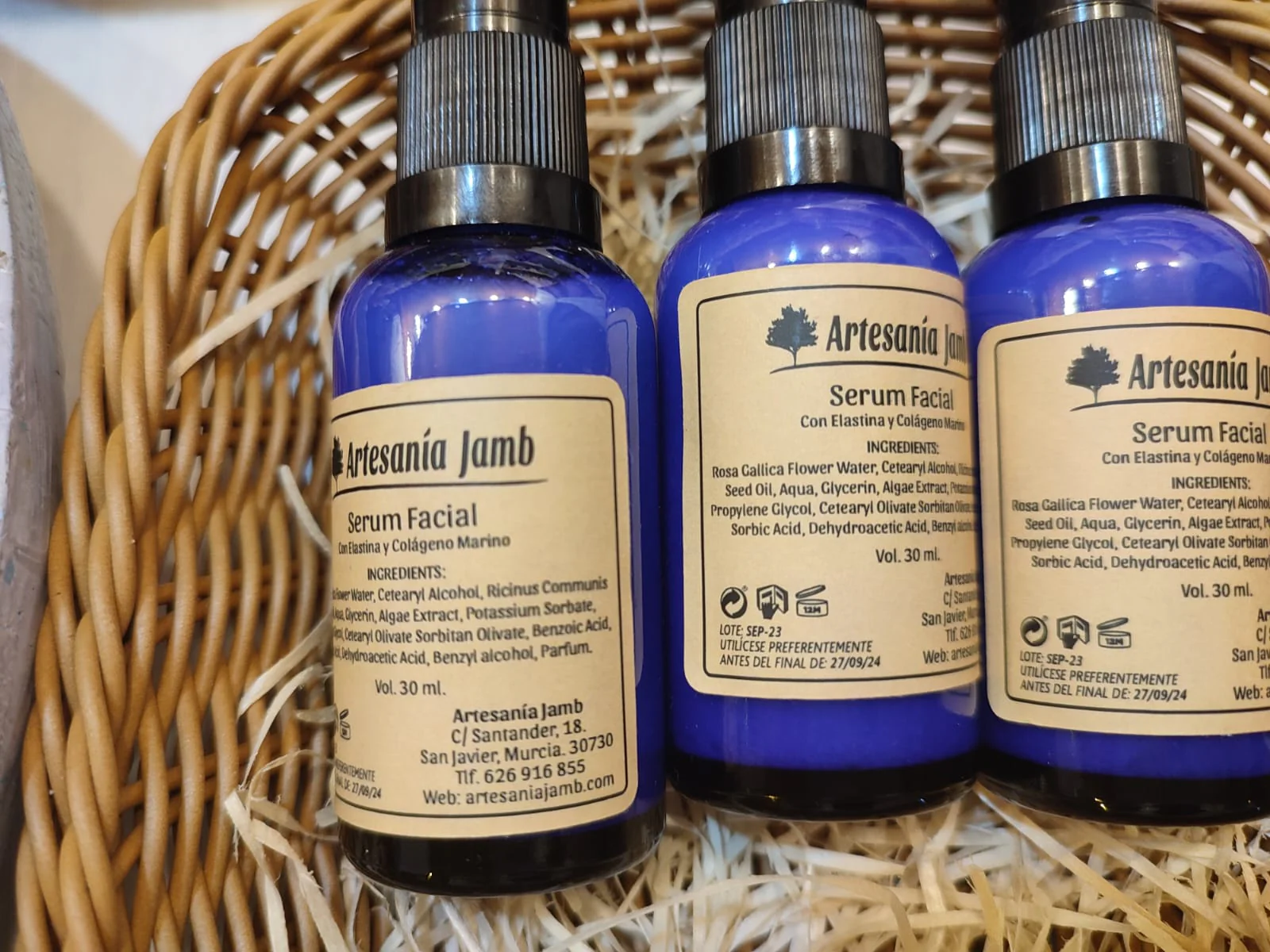 Serum Facial – con Elastina y Colágeno Marino. Aporta luminosidad, hidratación y suavidad. Textura ligera y de fácil absorción.