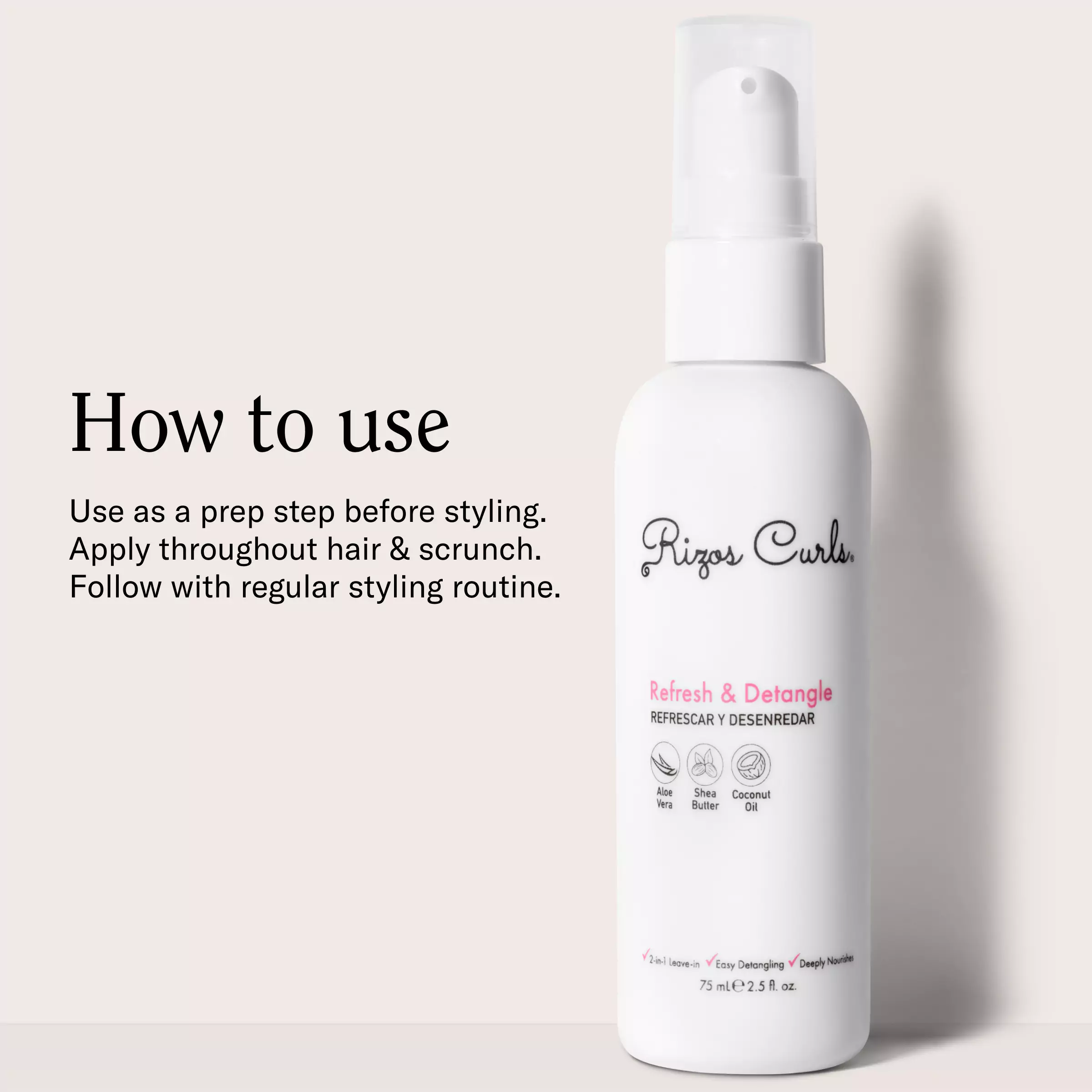 Este galardonado y ligero humectante sin aclarado 2 en 1 tiene dos funciones: Refresca rizos en entre los días de lavado y Desenreda cabello recién lavado. Elaborado con ingredientes naturales como aceite de coco, aloe vera, manteca de karité y aceite de oliva que Dejará tus rizos hidratados, nutridos, brillantes y sin frizz. It ¡Es la opción definitiva para mantener tus rizos impresionantes!