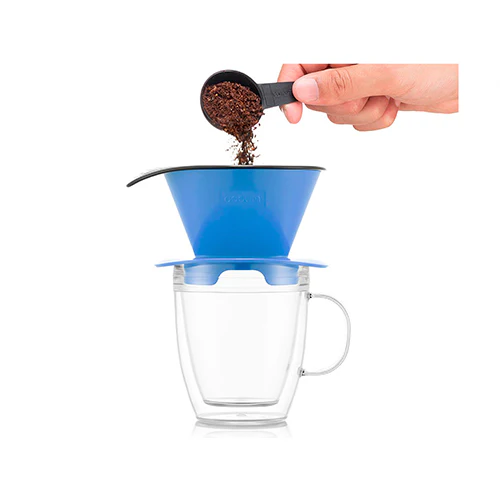 - agregue una cucharadita colmada o una cucharada Bodum de café para filtro recién molido en el cono filtrador.