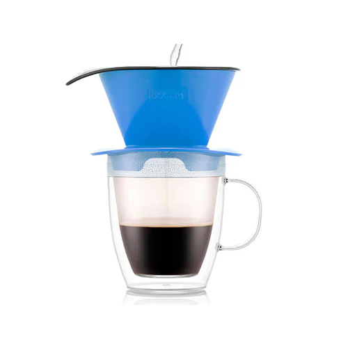 El café de goteo es muy popular entre los expertos cafeteros por su robusto aroma y su sabor suave y con cuerpo. Algunas veces solo necesita una taza de café, por lo que quizás no necesite preparar una cafetera entera. En esas ocasiones, puedes recurrir a la taza de doble pared y el cono de goteo para café POUR OVER de Bodum.