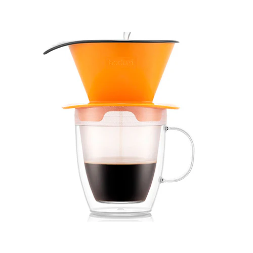 El café de goteo es muy popular entre los expertos cafeteros por su robusto aroma y su sabor suave y con cuerpo. Algunas veces solo necesita una taza de café, por lo que quizás no necesite preparar una cafetera entera. En esas ocasiones, puedes recurrir a la taza de doble pared y el cono de goteo para café POUR OVER de Bodum.