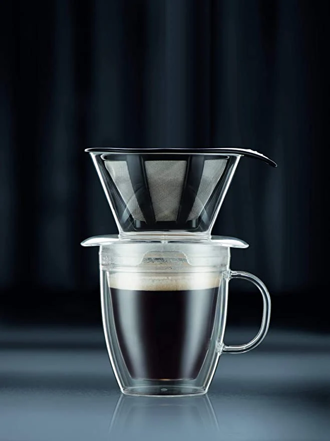 El café de goteo es muy popular entre los expertos cafeteros por su robusto aroma y su sabor suave y con cuerpo. Algunas veces solo necesitas una taza de café, por lo que quizá no necesites preparar una cafetera entera. En esas ocasiones, puedes recurrir a la taza de doble pared y el cono de goteo para café POUR OVER de Bodum.