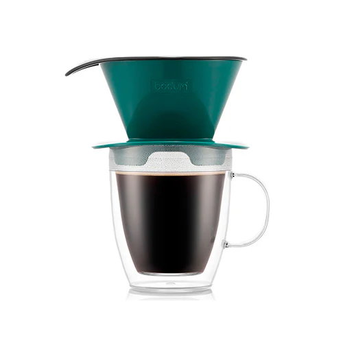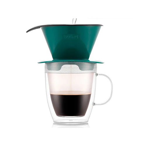 El café de goteo es muy popular entre los expertos cafeteros por su robusto aroma y su sabor suave y con cuerpo. Algunas veces solo necesita una taza de café, por lo que quizás no necesite preparar una cafetera entera. En esas ocasiones, puedes recurrir a la taza de doble pared y el cono de goteo para café POUR OVER de Bodum.