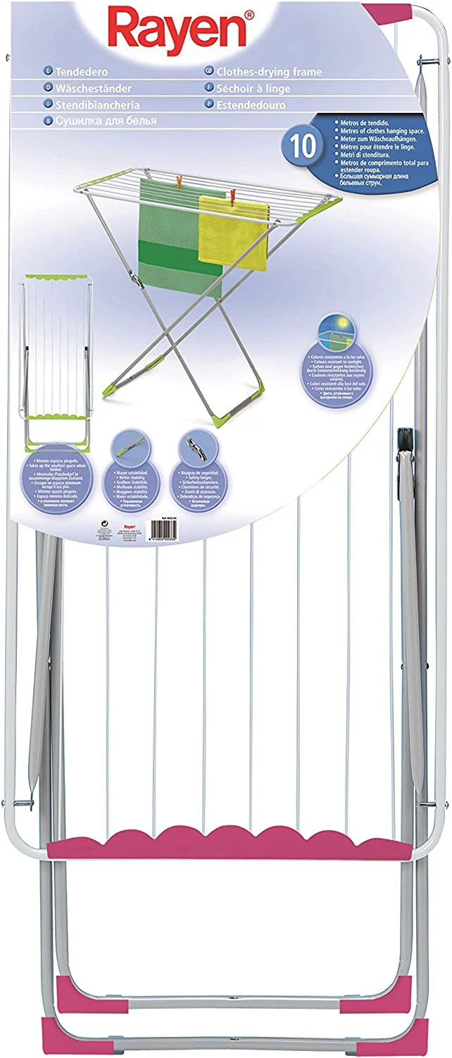 Tendedero de piso, 10 mts. Marca: RAYEN. Color: Gris-Rosa. Tamaño: 132X3X54. Garantía: De fábrica.