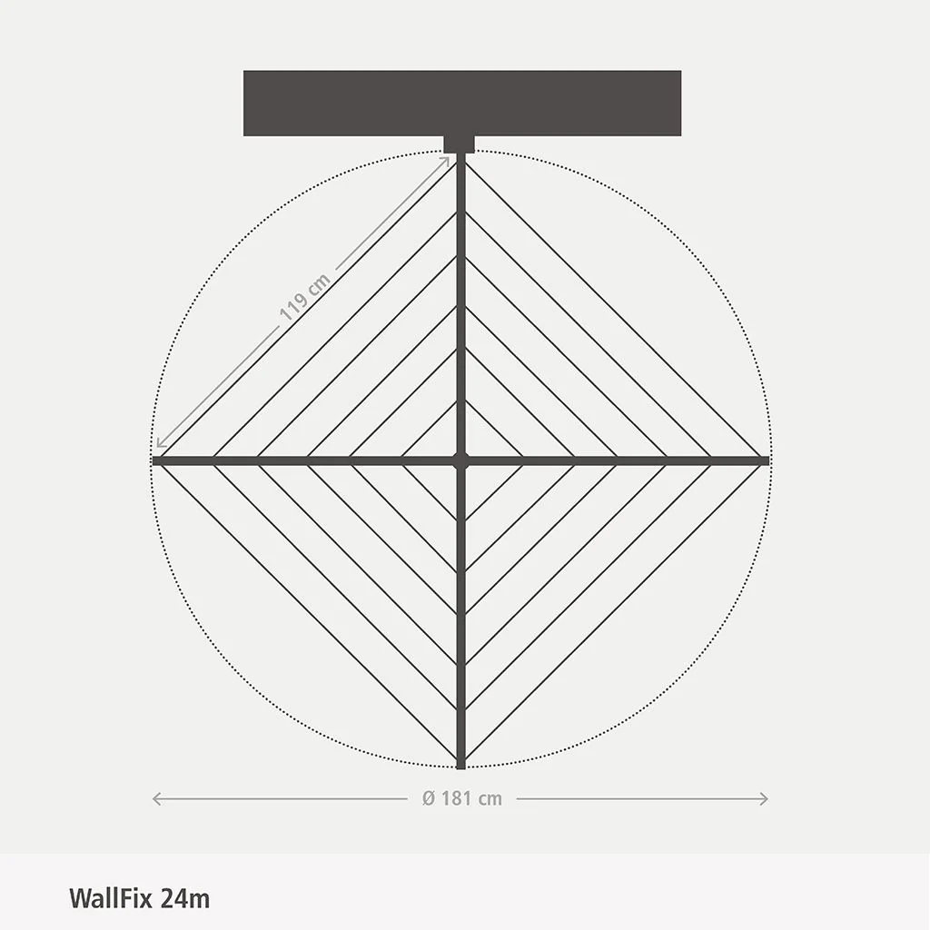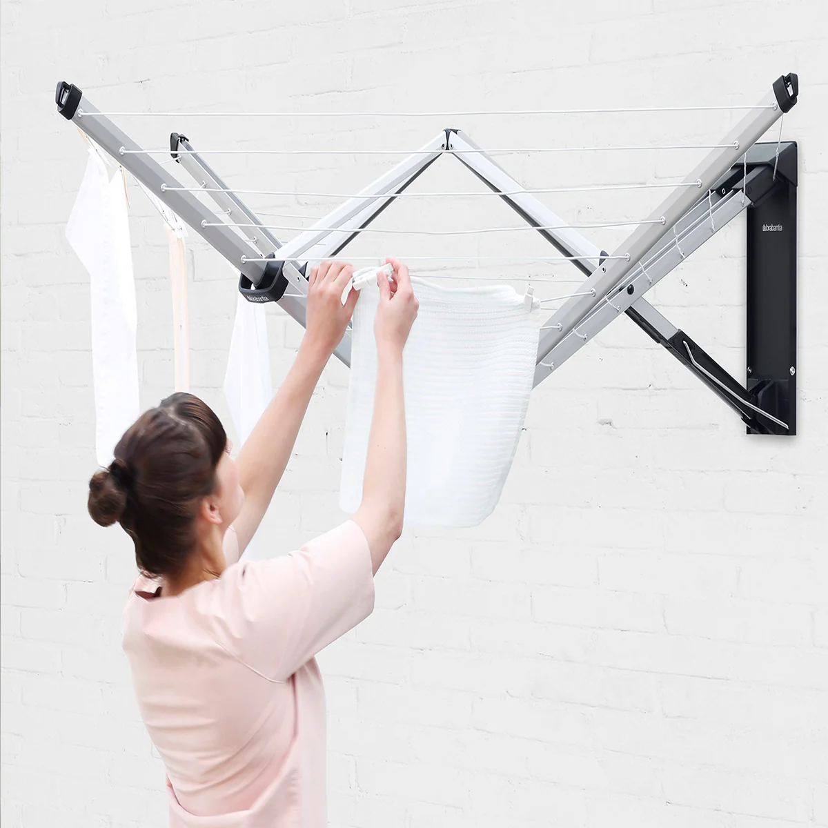 El tendedero de pared retráctil Wallfix de Brabantia ofrece 24 metros de tendido en un diseño compacto y funcional.