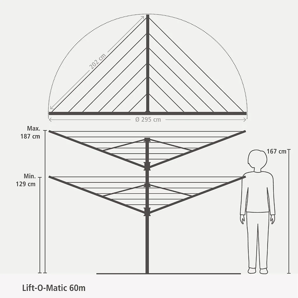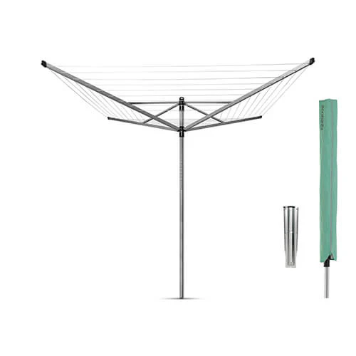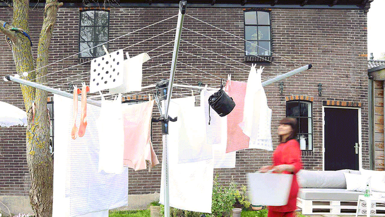 Disfruta de los días de la colada, deja que tu tendedero haga el trabajo por ti. Ajústalo sin esfuerzos a tu altura ideal de trabajo (cualquiera entre 129 y 187 cm) y gíralo. Este resistente tendedero de Brabantia vien provisto de nada más y nada menos que 60 metros de cuerdas de alta calidad, resistentes a los rayos UV y antideslizantes, que además permanecen siempre tensas. En los extremos de los brazos trae unas ranuras especiales para colgar perchas. Con un sólido gancho para colgarlo y almacenarlo cuando hayas acabado. Además, es bueno para el planeta. ¡Levanta hasta el ánimo!