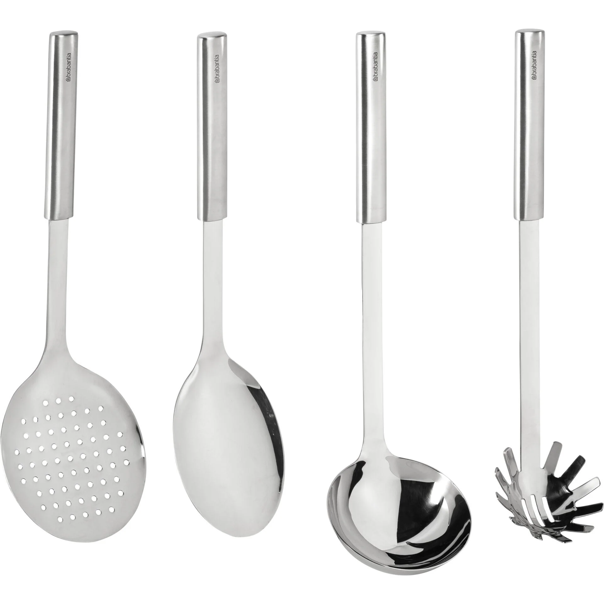 Lleva tu cocina al siguiente nivel con este set de utensilios de cocina Profile en Matt Steel. Este equipo de primera se compone de un cucharón sopero, una cuchara para verduras, una cuchara para espagueti y una espumadera. Todos tus ayudantes de cocina favoritos juntos en un set diseñado para auténticos chefs caseros.